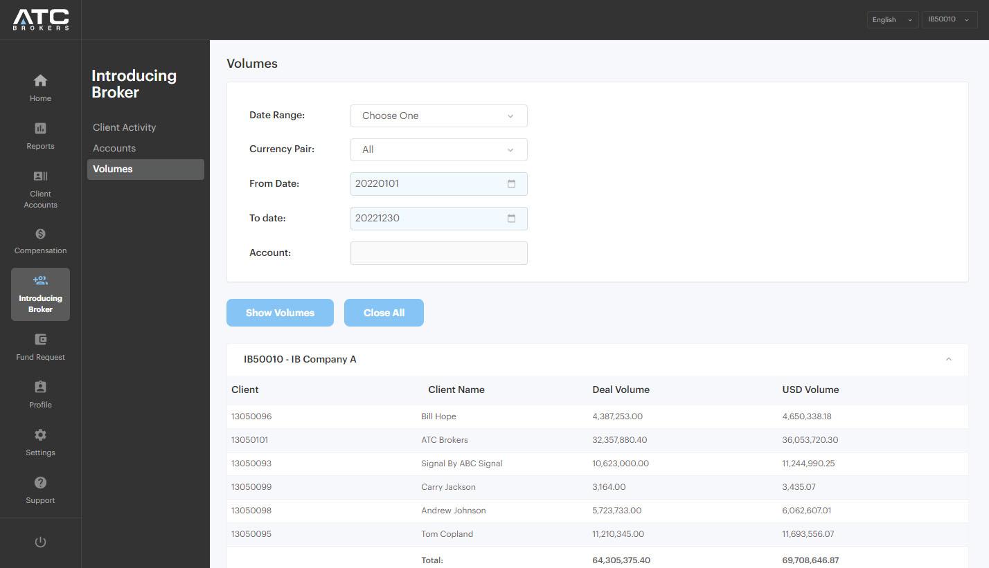 IB Portal The portal provides the introducing broker with the necessary data to conduct its operation. Introducing brokers have access to all the reporting features to view their business productivity, compensation, sub-introducers, client activity and much more.